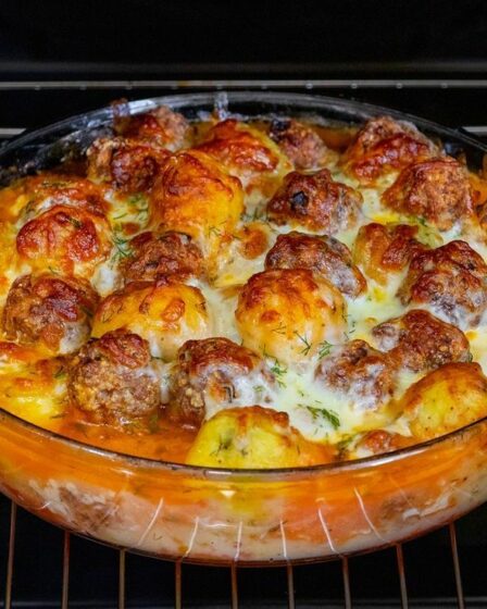 Frühstücksauflauf mit Keksen und Soße, Wurst und Ei – Dieser …