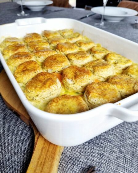Frühstücksauflauf mit Keksen und Soße, Wurst und Ei – Dieser …