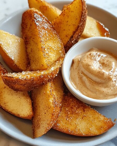 Heißluftfrittierte Apfelspalten mit Karamell-Schlagsahne-Dip
