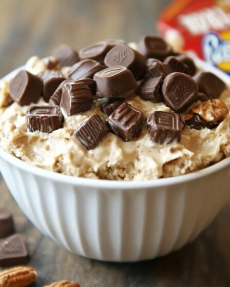 Dekadenter Erdnussbutter-Fluff-Dip mit Schokolade und Erdnussbutter-Cups Zutaten: Zubereitung: Die Frischkäse …