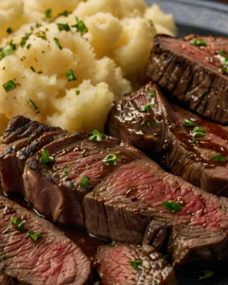 Zutaten: Für das Hähnchen und das Steak: Für das Käse-Kartoffelpüree: …