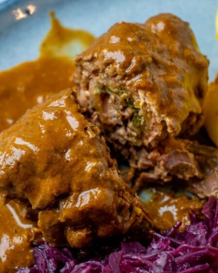 ZUTATEN:500 g Roulade(n) vom Rind in feine Streifen geschnitten4 Zwiebel(n), …