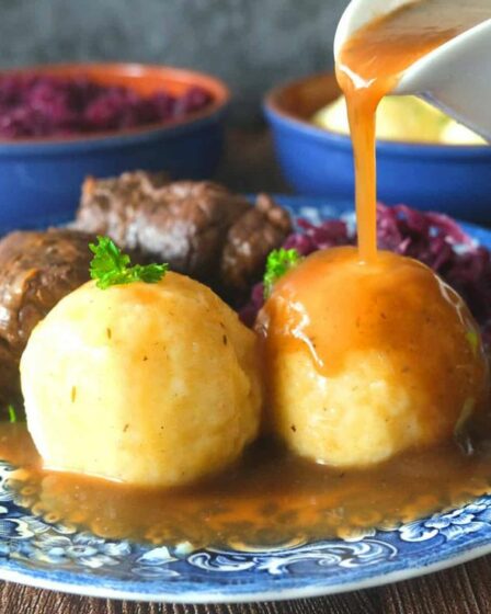 Sauerbraten mit Rotkohl und Kartoffelklößen