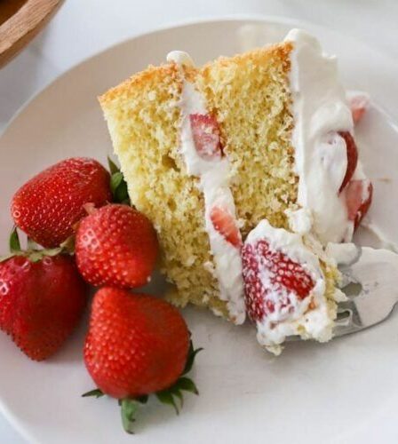 Erdbeer Biskuitkuchen vom Blech in 5 Minuten ein Tassenrezept
