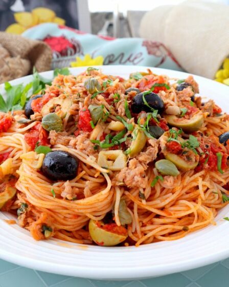 Mediterrane Spaghetti mit Thunfisch, Oliven und Kapern