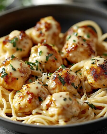 Knoblauchbutter-Hähnchenbissen mit Parmesan-Pasta
