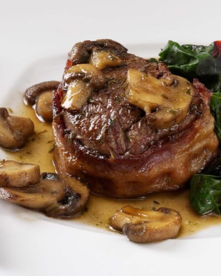Schweinefilet im Speckmantel mit Champignons, Das Fleisch war super zart!