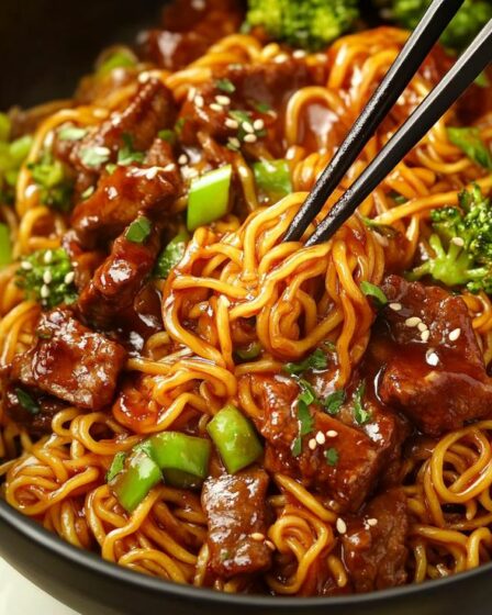 Dieses Rezept für chinesisch gebratene Nudeln mit Rindfleisch ist ein …