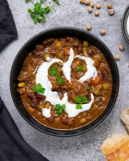 Würzige Ajvar-Suppe mit Hackfleisch für den perfekten Genuss an kalten …