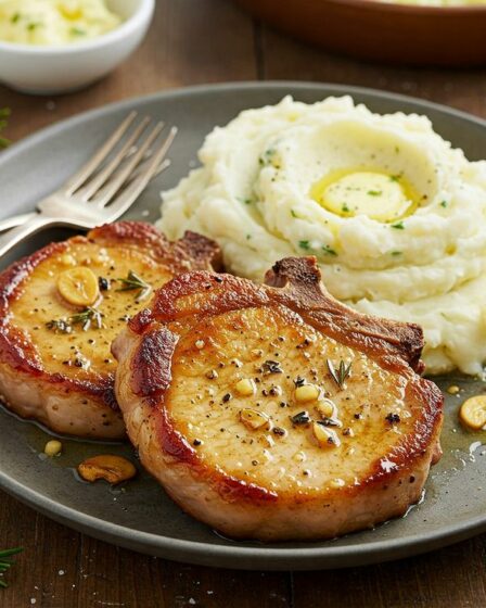 Zutaten:Für die Schweinekoteletts:4 Schweinekoteletts mit Knochen, ca. 2,5 cm dickSalz …