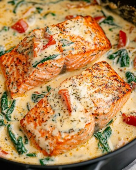 Zutaten:4 Lachsfilets (ohne Haut)2 EL Olivenöl3 Knoblauchzehen, gehackt1 Tasse Kirschtomaten, …