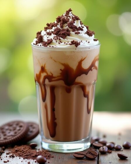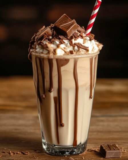 Zutaten:2 Kugeln Schokoladeneis250 ml Milch2 Esslöffel SchokoladensirupSchlagsahne Schokoladenraspel zur DekorationZubereitung:Schokoladeneis, …