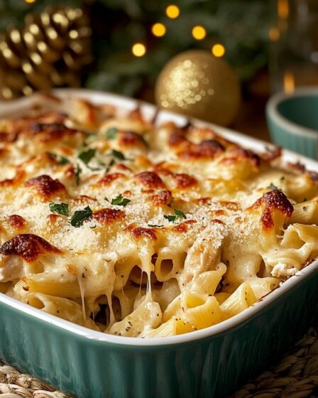 Knuspriger Nudel-Hähnchen-Auflauf mit Knoblauch und Parmesan