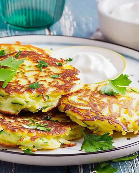 Entdecken Sie den köstlichen Geschmack von Zucchini-Kartoffelpuffern, einem vegetarischen Genuss, …