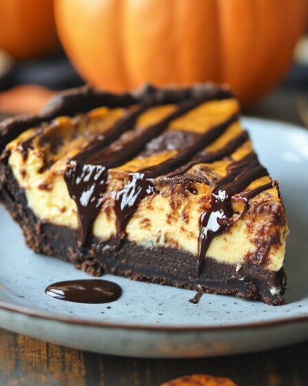 Kürbis-Schokoladen-Käsekuchen-Swirl Rezept Dieses herbstliche Dessert kombiniert die Aromen von Kürbis, Zartbitterschokolade …
