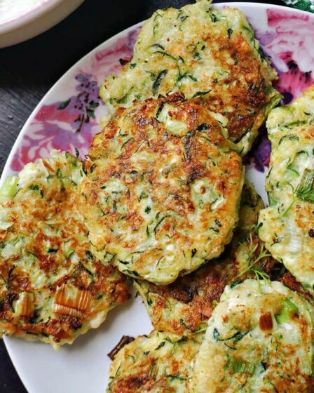 Zucchini-GemĂĽsebällchen mit Käse in einer cremigen Kräutersauce sind ein leckerer …