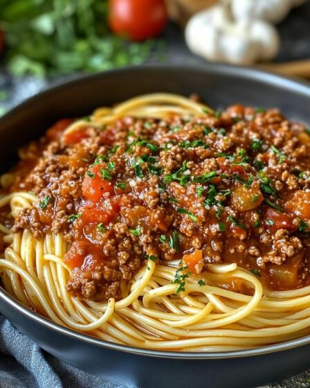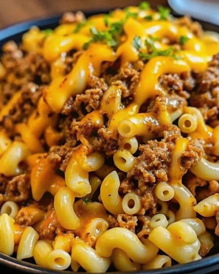 Dieses köstliche Nudelgericht vereint würziges Hackfleisch, cremige Käsesauce und perfekt …