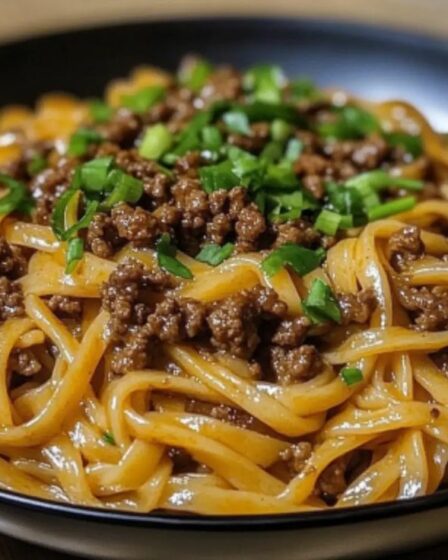 Nahrhafte Nudeln mit Hackfleisch und Gemüse überbacken
