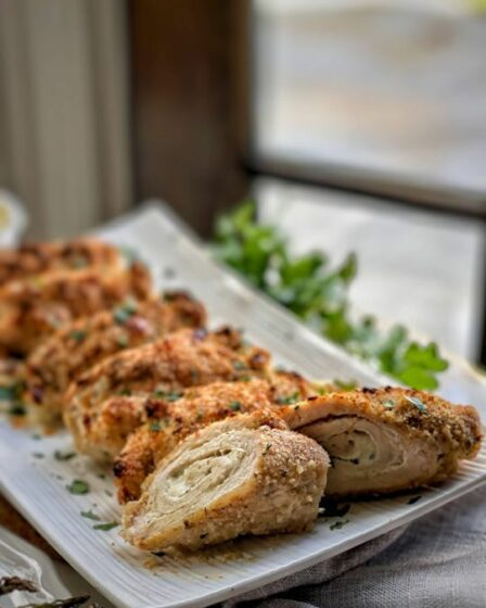 Diese Rolle mit Hühnerhackfleischfüllung ist ein köstliches und herzhaftes Gericht, …
