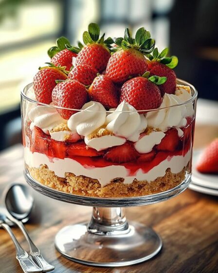 Dieses umwerfende Erdbeer-Käsekuchen-Trifle ist ein Dessert, das man im Voraus …