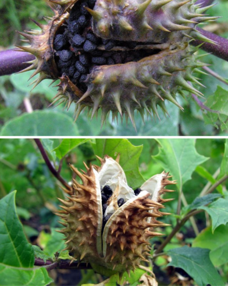 Datura stramonium, auch bekannt als Stechapfel, Teufelstrompete oder Stechapfel, ist …