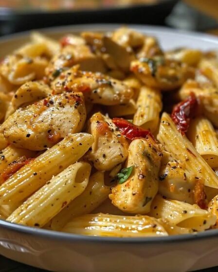 Romantische Hähnchen-Pasta mit sonnengetrockneten Tomaten und Parmesan Zutaten: Zubereitung: Die …