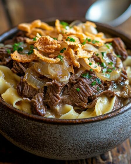 Französisches Zwiebel-Rindfleisch mit Nudeln