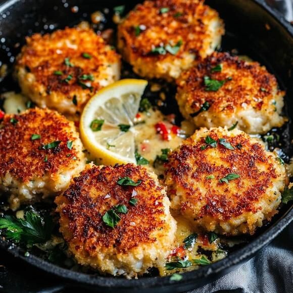 Cheddar-Bay-Krabbenküchlein mit Zitronenbutter-Zuckerguss Ein köstliches Fischgericht mit herzhaftem Cheddar-Käse, überbacken …