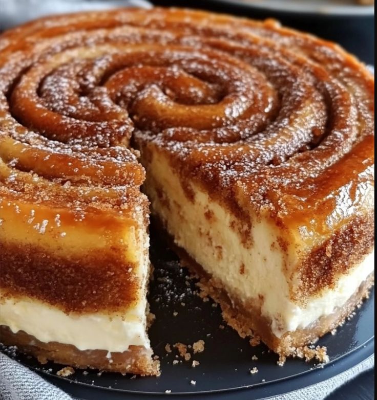 Zimtschnecken-Cheesecake – Die perfekte Kombination! Ein cremiger Cheesecake mit Zimtwirbel und zartem Frosting – der perfekte Genuss für alle Zimt-Fans!