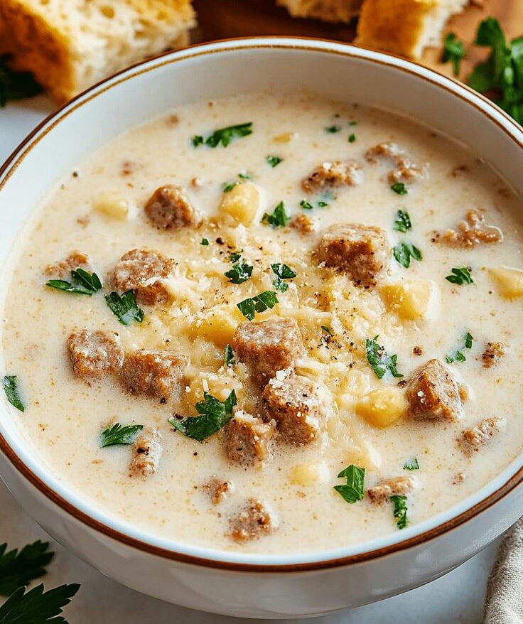 🍲 Wärmen Sie sich mit dieser cremigen Parmesan-Ditalini-Suppe auf! Sie ist reichhaltig, wohltuend und voller köstlicher Aromen – perfekt für einen kühlen Abend. 🧀💛