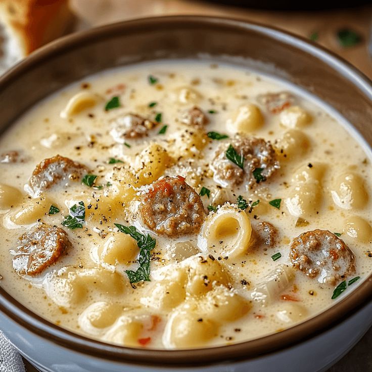 🍲 Wärmen Sie sich mit dieser cremigen Parmesan-Ditalini-Suppe auf! Sie ist reichhaltig, wohltuend und voller köstlicher Aromen – perfekt für einen kühlen Abend. 🧀💛