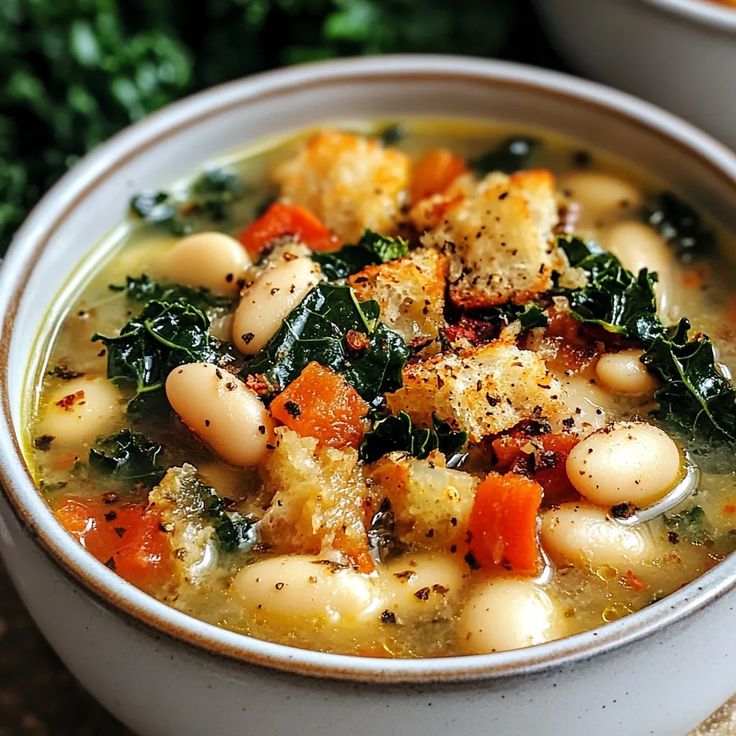 Suppe mit toskanischen weißen Bohnen und Grünkohl