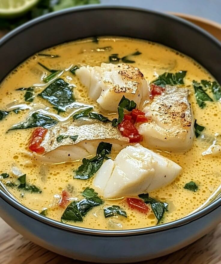 Die Kokos-Limetten-Fischsuppe ist ein leichtes und pikantes Gericht, das zarten …