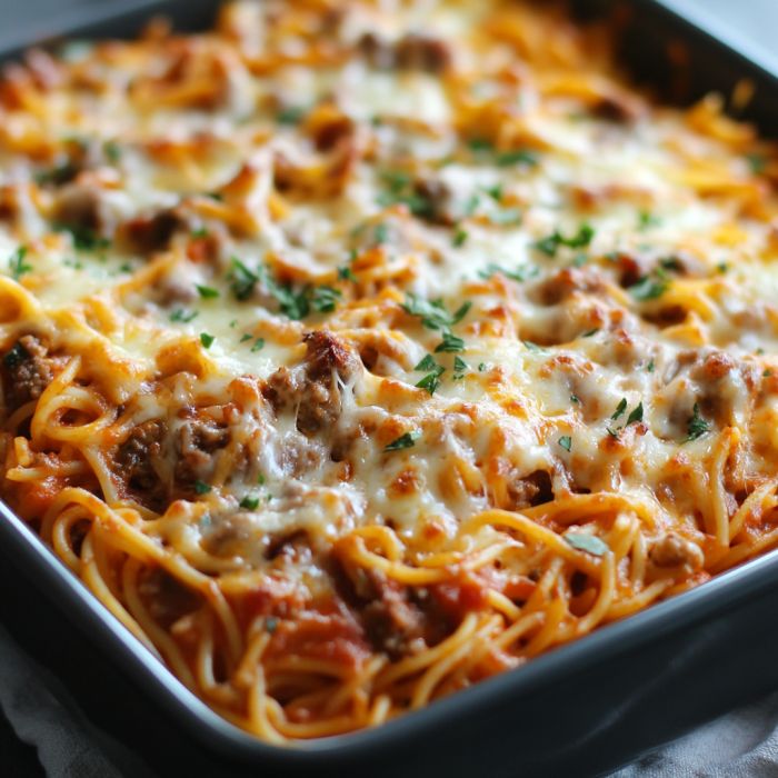 Gebackener Frischkäse-Spaghetti-Auflauf