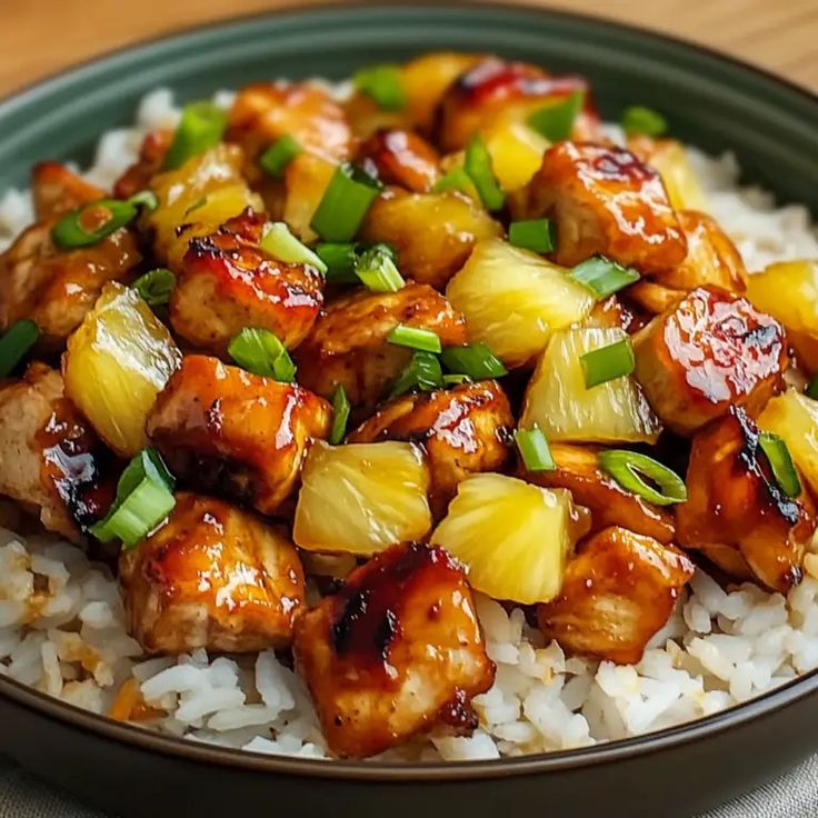 Ananas-Hühnchen mit Reis