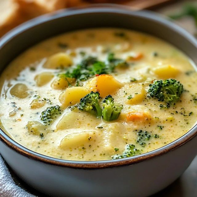 Kartoffel-Brokkoli-Cheddar-Suppe aus dem Schongarer