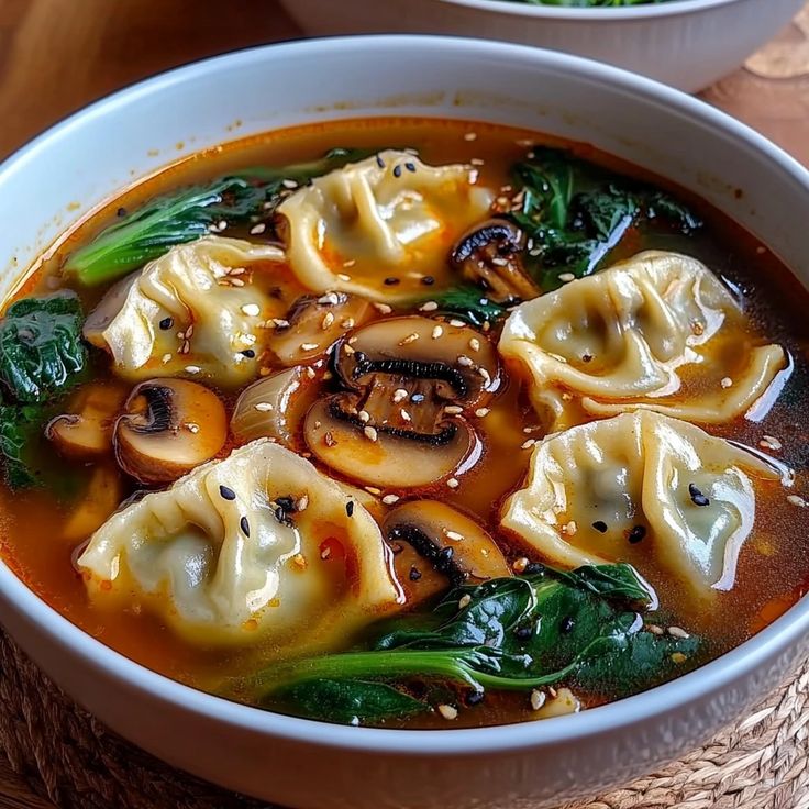 Potsticker-Suppe mit Pilzen und Pak Choi