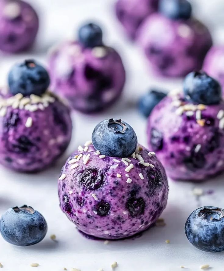 Cremige Blaubeer-Käsekuchen-Protein-Energie-Bällchen