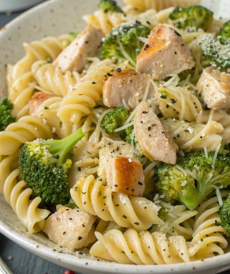 Cremige Hähnchen-Brokkoli-Pasta Zutaten: Zubereitung: Die Nudeln in einem großen Topf …