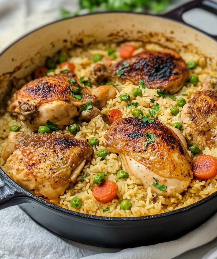 Hähnchen mit Reis aus einem Topf
