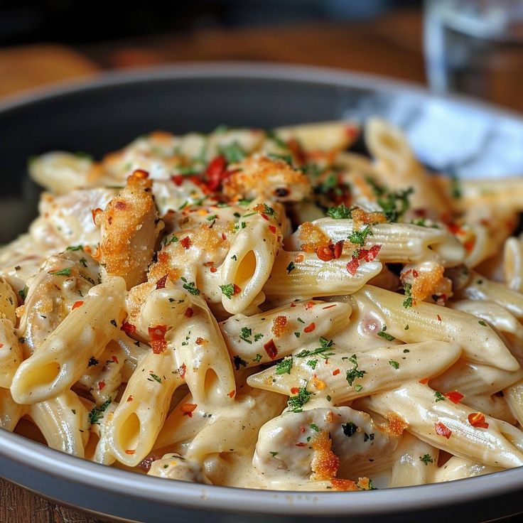 Dekadenter, cremiger Crack Chicken Penne-Genuss Zutaten: Zubereitung: Penne nach Packungsanweisung …