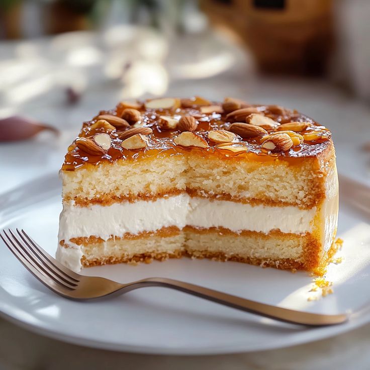Ein himmlisch cremiger Biskuit mit knusprigem Mandel-Topping, perfekt für jeden …