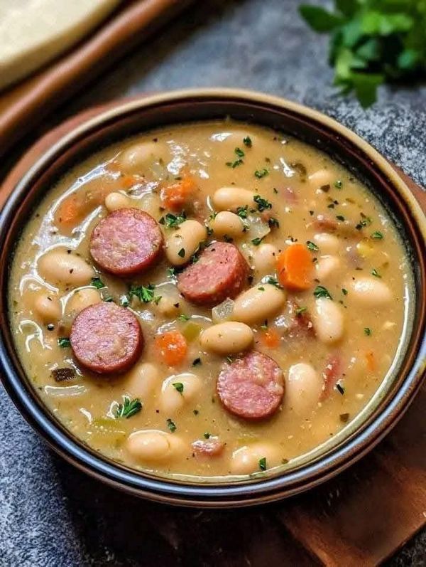 Cremige Bohnensuppe mit Kielbasa