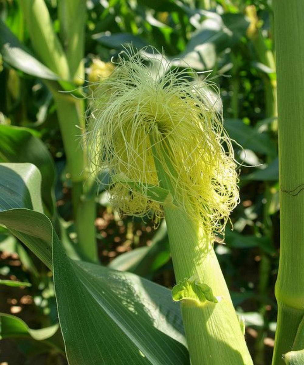 Maisseide, die zarten, seidigen Fäden, die aus einem Maiskolben hervorschauen, …