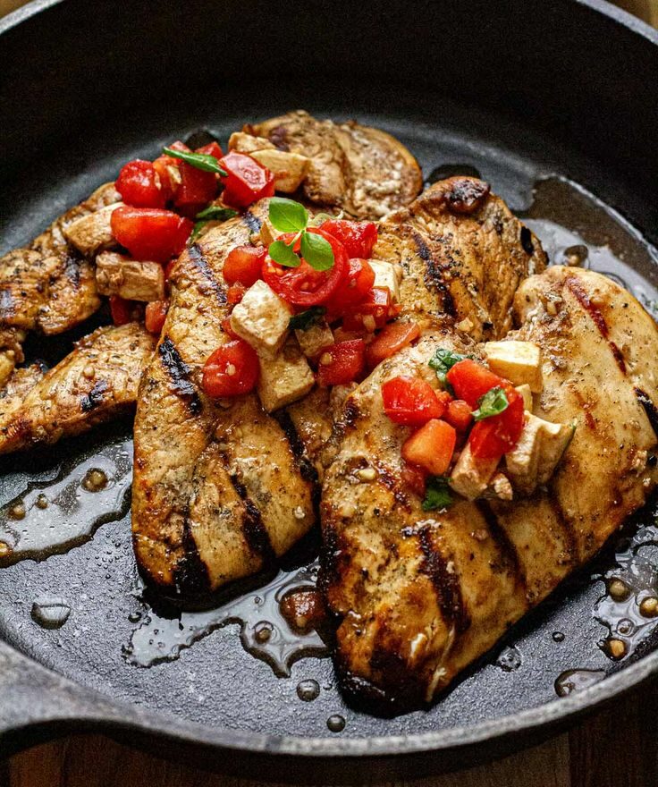Gegrilltes Bruschetta-Hähnchen mit frischem Tomaten-Basilikum-Topping Zutaten: Für das Bruschetta-Topping: Für …