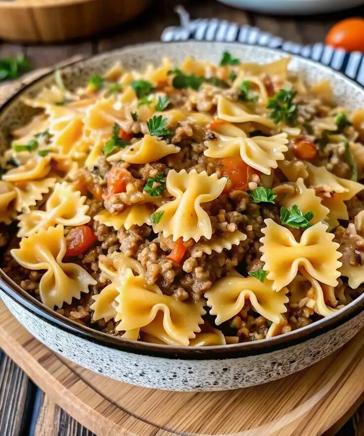 Farfalle-Nudeln mit Hackfleisch