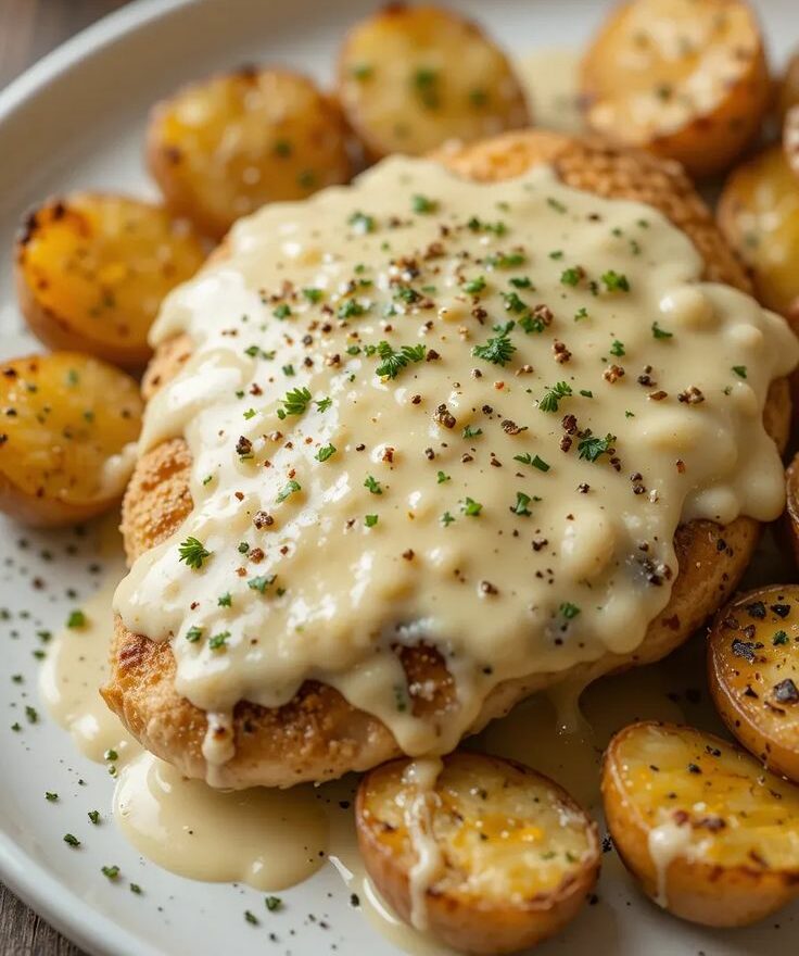 Knoblauch-Parmesan-Hähnchen aus der Pfanne mit knusprigen Kartoffeln Zutaten: Zubereitung: Kartoffeln …