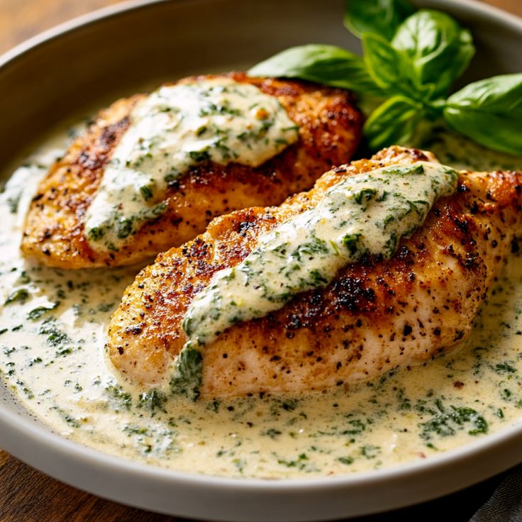 Mozzarella-Hähnchen in Basilikum-Sahnesauce