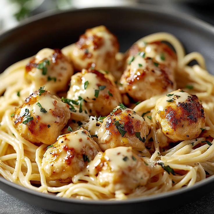 Knoblauchbutter-Hähnchenbissen mit Parmesan-Pasta