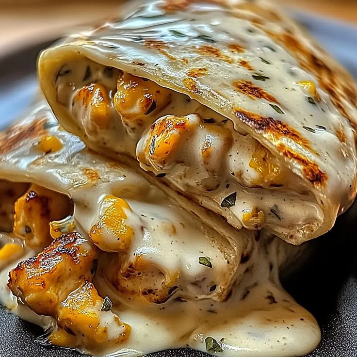 Ein herzhaft gefüllter Wrap mit saftigem Hähnchen, cremiger Knoblauch-Joghurt-Soße und …